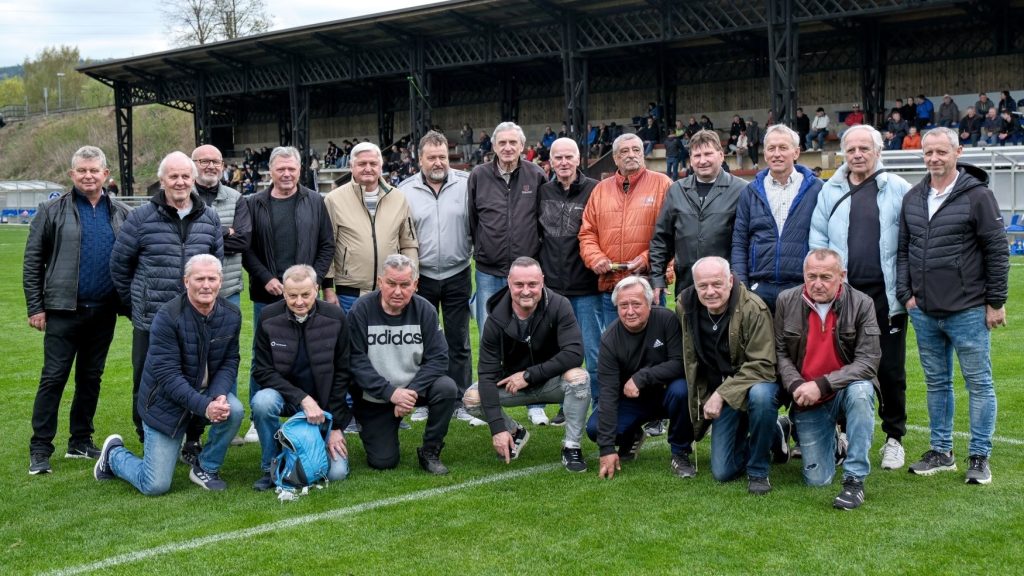 Bývalí hráči Turnova na společném snímku: Zleva stojí: Jiří Šteffan, Josef Netušil, Petr Bajer, Karel Nedvěd, Ladislav Beneš, …, Karel Stanner, František Erban, Zbyněk, Kotrman, Petr Horáček, Roman Mikolášek a místopředseda FKT Petr Havel, též hráč! Zleva v pokleku: Šteffan Šumeraj, Zdeněk Bubák, Jiří Šimek, Tomáš Nosek, Luděk Dlouhý, Radek Houška, Petr Koubek.