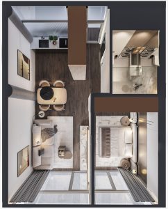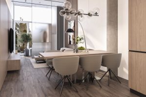 Interiéry se chlubí minimalistickým přístupem v neutrálních tónech s nevtíravým akcentem barvy. Na výběr bude ze dvou variant zařizovacích prvků: standard, který nabízí dostupnou variantu, ale neslevuje z nároků na vkusný design, a nadstandard, přinášející odvážnější design s nekompromisní kvalitou. Ať se majitel rozhodne pro jakoukoliv variantu, základem každého bytu bude podlahové vytápění, trojskla s hliníkovými rámy a balkon či předzahrádka.