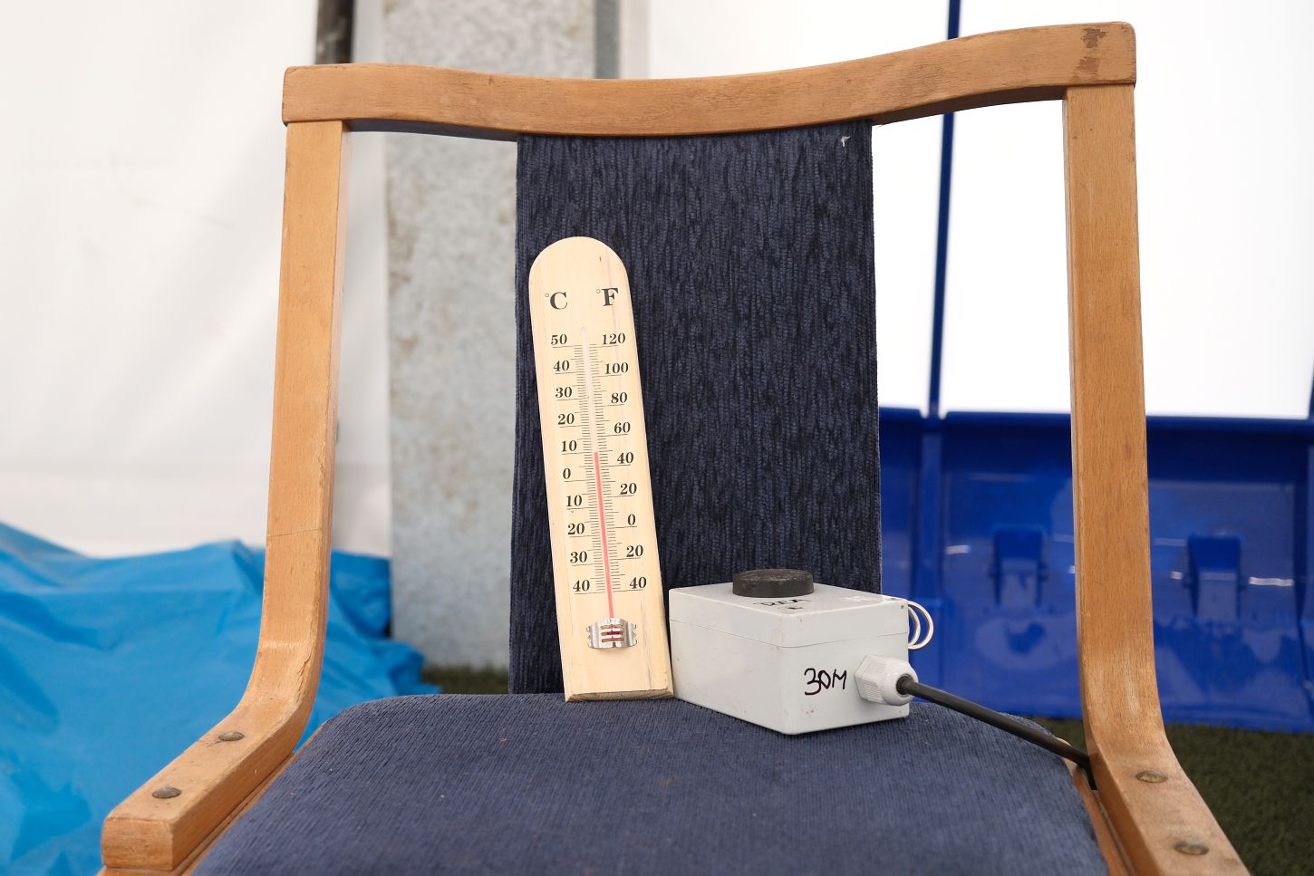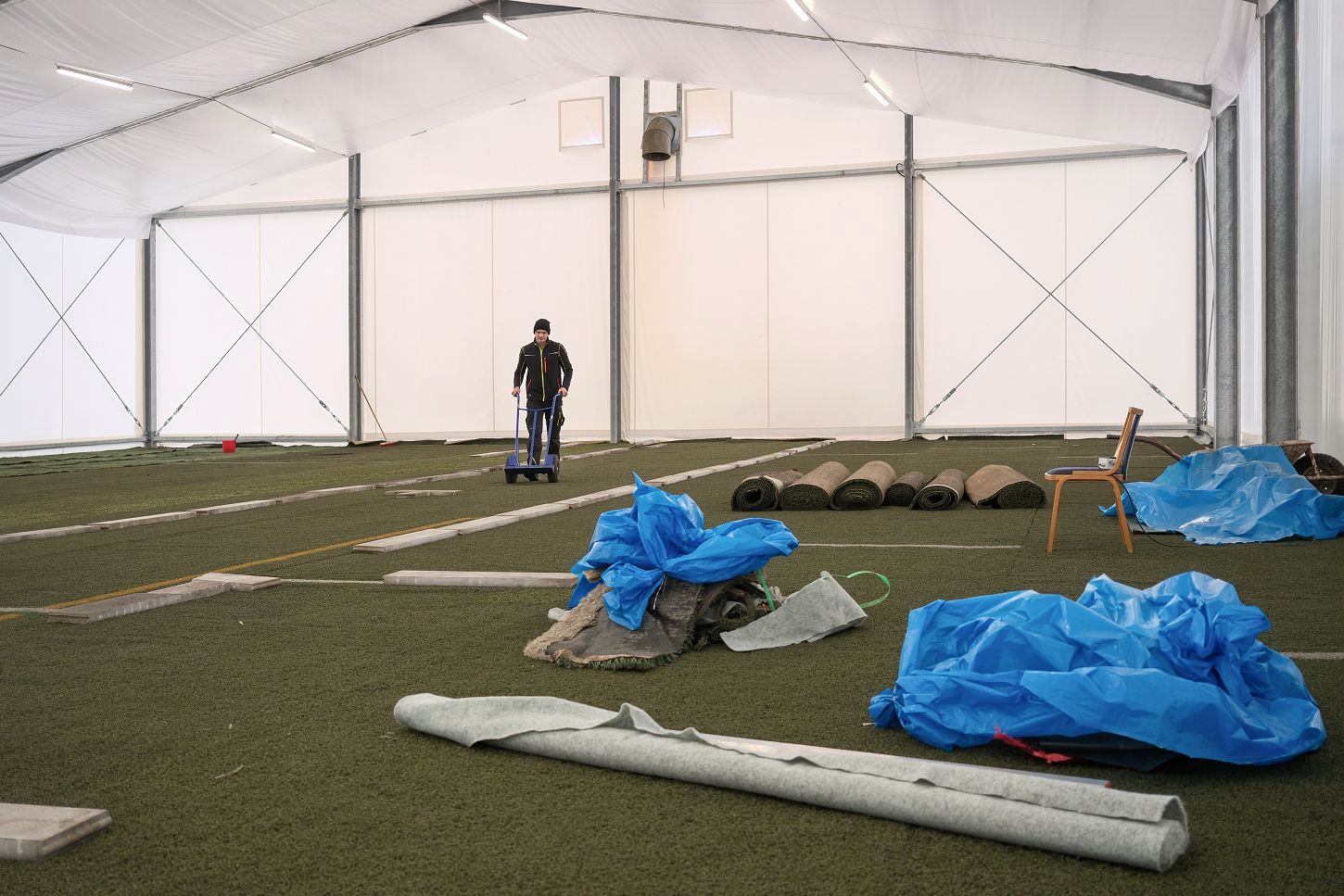 Provizorní hala má rozměry 20 × 30 metrů. Její zázemí tvoří čtyři mobilní buňky – dvě slouží jako šatny, jedna jako sociální zařízení a jedna jako sklad. V minulém týdnu bylo k buňkám přivedeno elektrické napájení a toalety byly napojeny na odpadní systém.