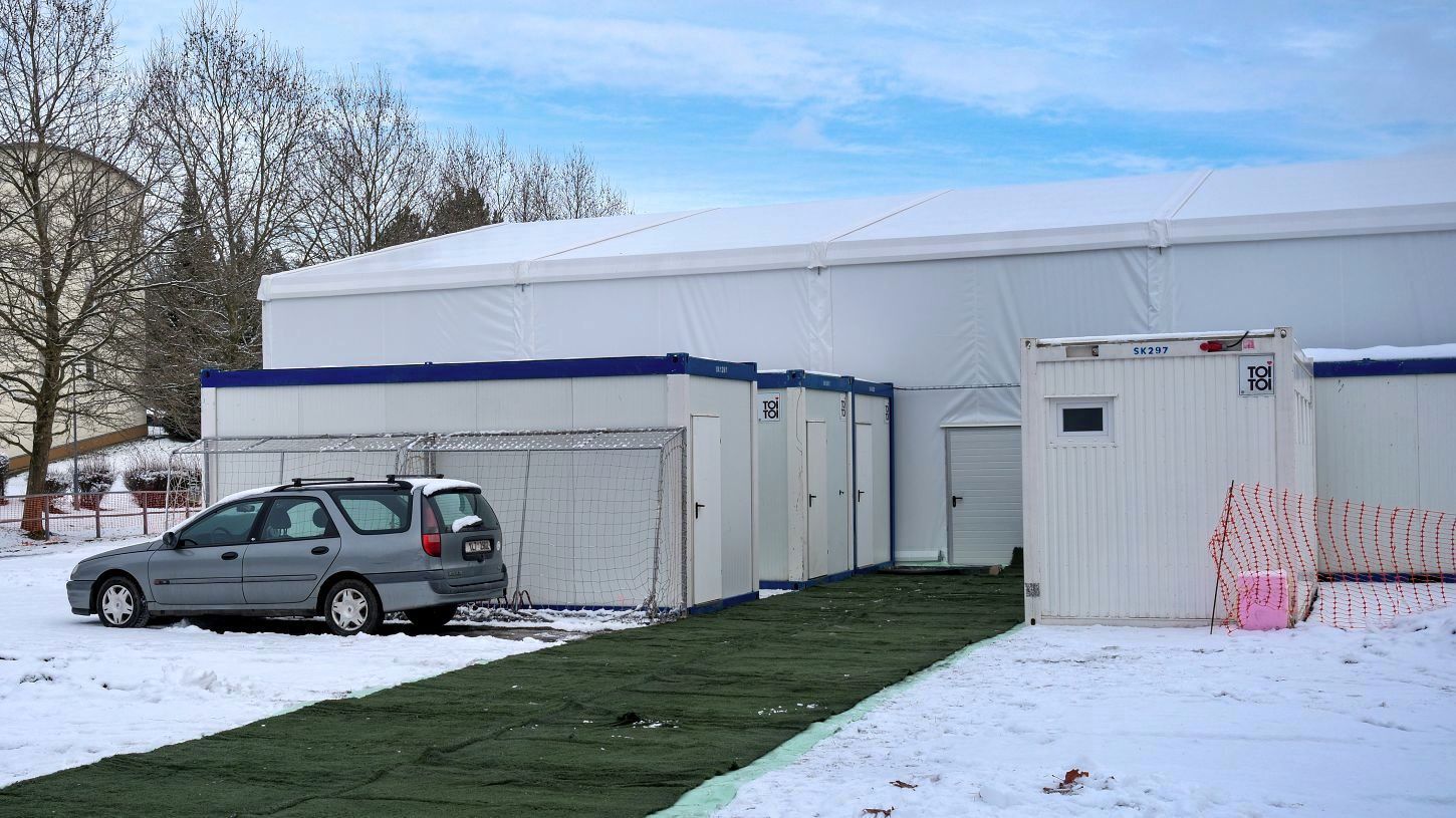 - NA TRAVNATÉM OVÁLU VYROSTLA PROVIZORNÍ SPORTOVNÍ HALA