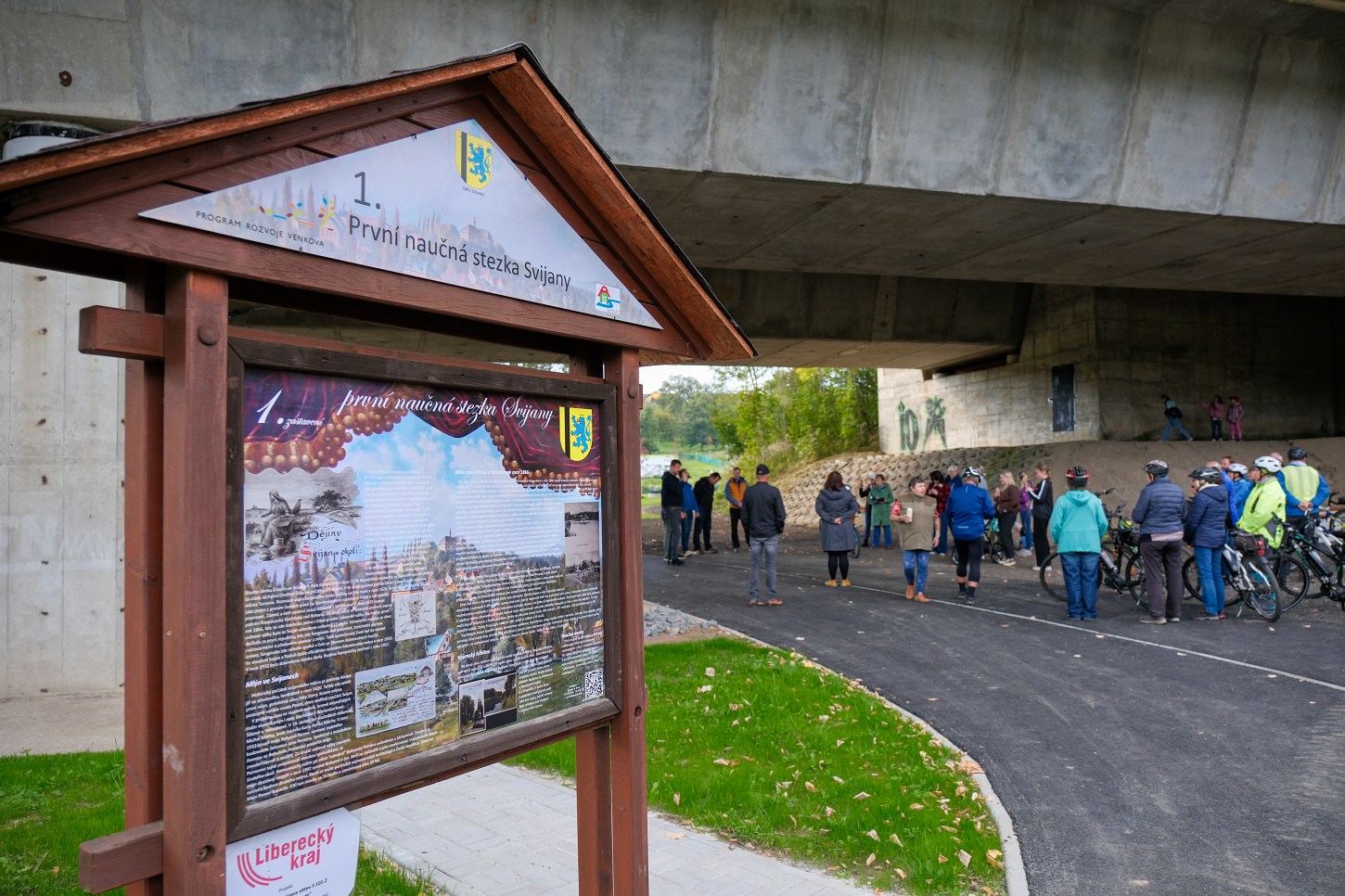 První říjnový pátek byl slavnostně otevřen nový, sice krátký, ale velmi důležitý úsek. Stometrová propojka od dálničního mostu ve Svijanech navazuje na již dokončenou trasu vedoucí Kabeláčovou zahradou ke svijanskému zámku. Liberecký kraj přispěl na její výstavbu částkou 1,5 milionu korun. Stavbu provedla firma Ing. Aleše Dubce, práce začaly 15. června a s předstihem byly dokončeny už 18. září letošního roku. „Nový úsek měří 107 metrů, je tři metry široký a má asfaltový povrch. Součástí stavby byl propustek a napojení na stávající trasu. Tento nově otevřený úsek tvoří prostřední část celkového propojení obcí a cyklotras v okolí. Na něj příští rok naváže výstavba posledního úseku směrem ke křižovatce se silnicí III. třídy, která bude zároveň součástí plánované rekonstrukce komunikace a chodníku v obci Svijany,“ uvedl náměstek hejtmana pro dopravu Jan Sviták. Liberecký kraj letos podpořil výstavbu cyklostezek celkovou částkou 14,5 milionu korun, obdobně jako v předchozích letech.