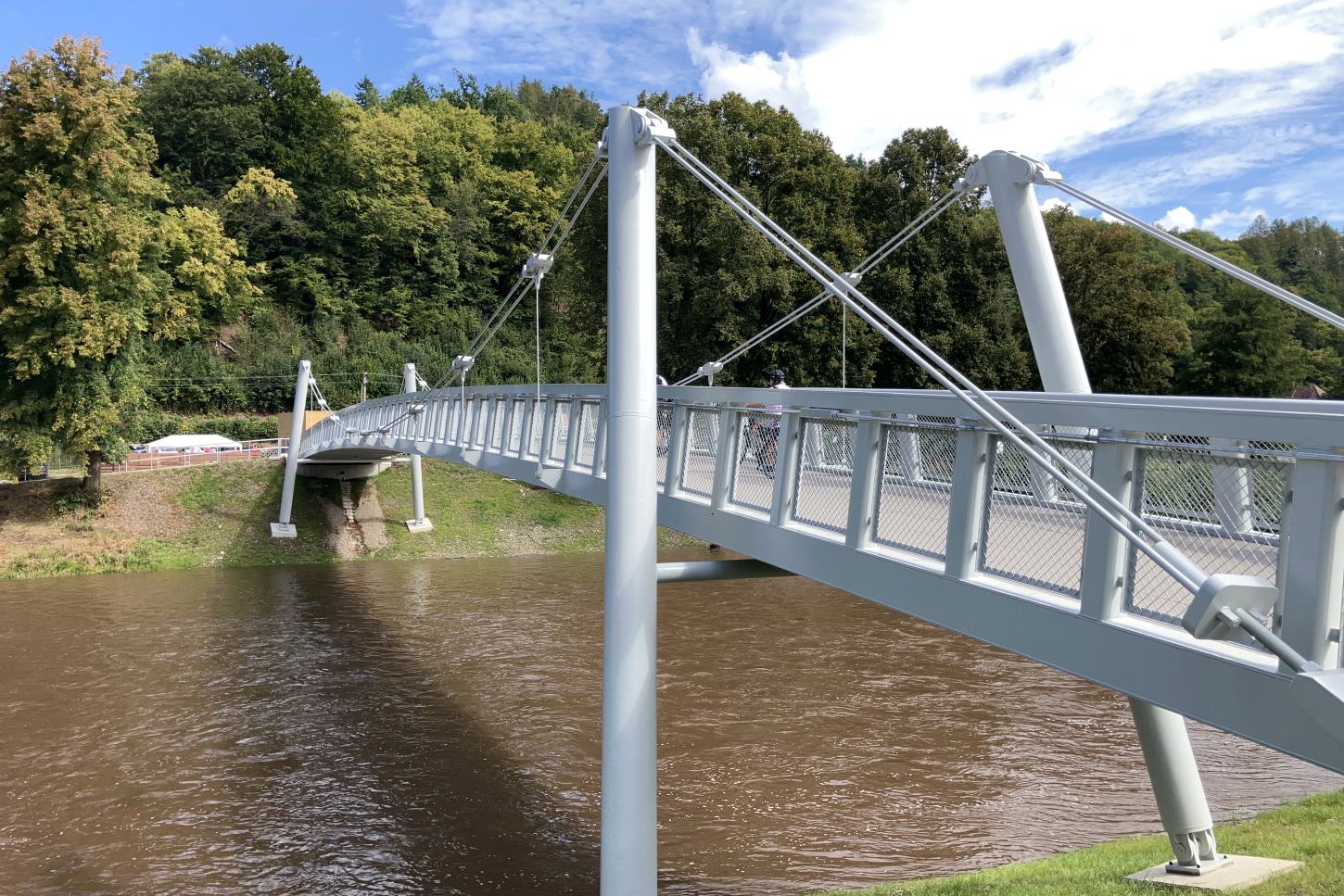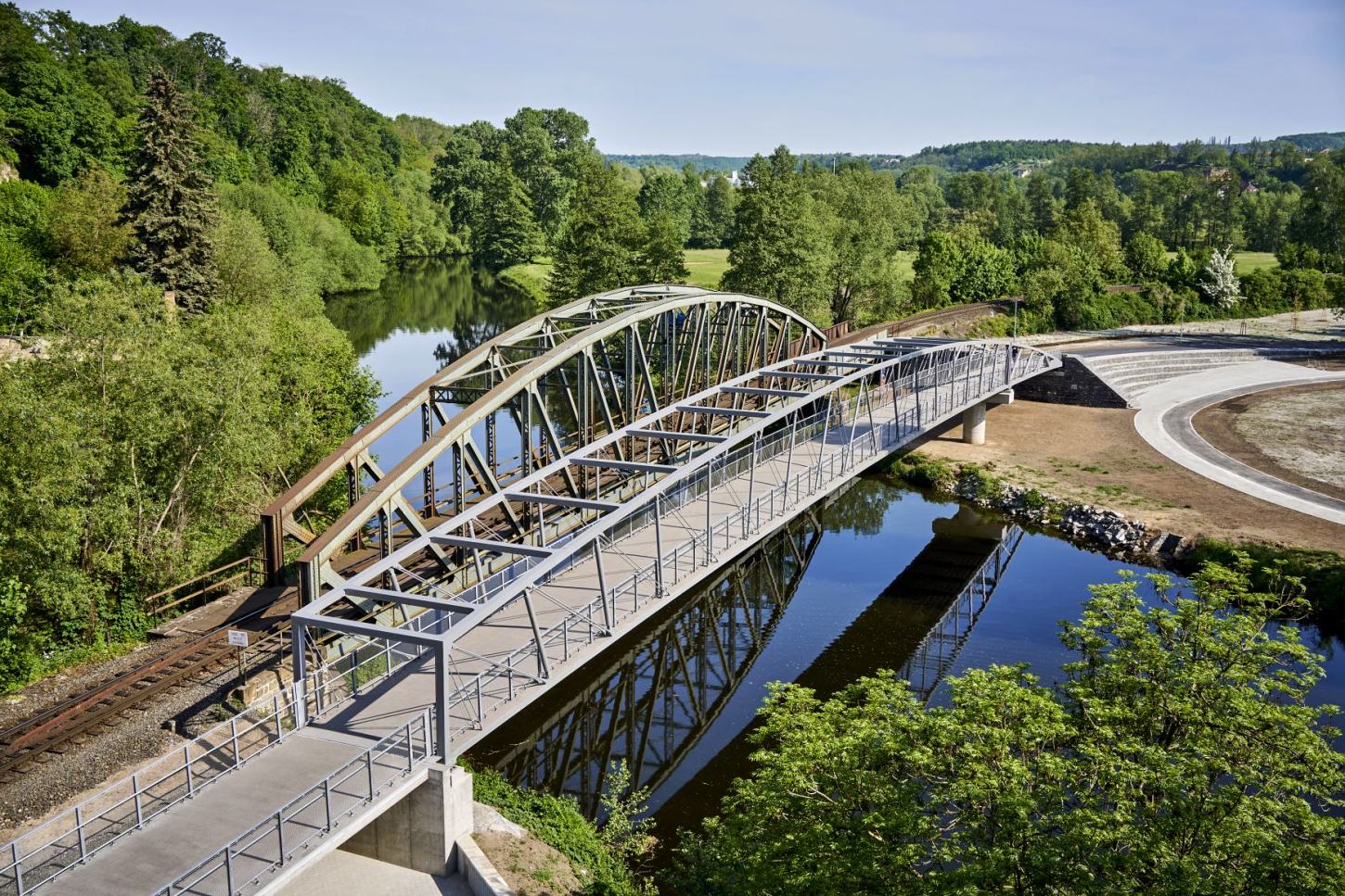 Středočeský kraj: Pracuje se na úseku Mnichovo Hradiště – Bakov nad Jizerou, včetně průjezdu k pískovně Veselá. Probíhá příprava úseku z Mladé Boleslavi do Benátek nad Jizerou a propojení cyklostezky mezi Bakovem nad Jizerou a Kosmonosy přes Chudoplesy a Bradlec (na snímku nová lávka v Mladé Boleslavi).