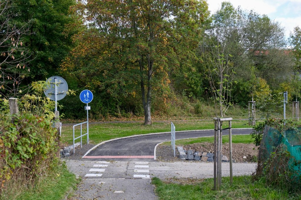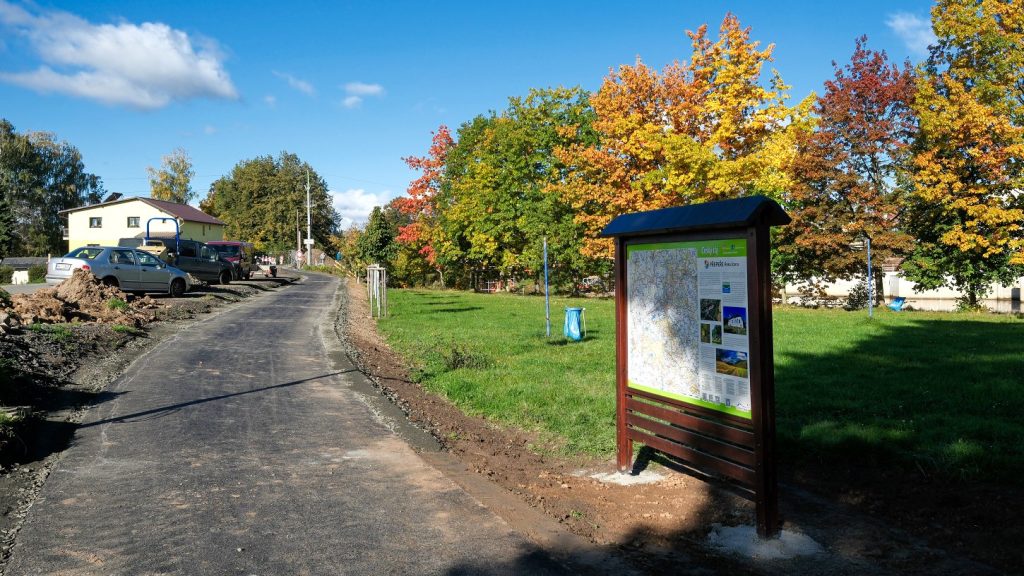 Na jaře letošního roku k již zprovozněnému úseku přibyla nová část ze Železného Brodu do Líšného. Dokončen byl také průchod cyklostezky Turnovem – od parkoviště Na Lukách (na snímku) až do Palackého ulice byl položen nový asfaltový povrch, stejně tak v Koškově ulici a v okolí železničního mostu přes Jizeru k zastávce Turnov-město. Hotovo je rovněž na hrázi mezi Mašovem a Modřišicemi. Nad rámec původního plánu byl letos vyasfaltován úsek z Přepeř do Mokrého, respektive do Všeně – tady bude hotovo v listopadu. Nová je i část od příšovických Písečáků směrem do obce.