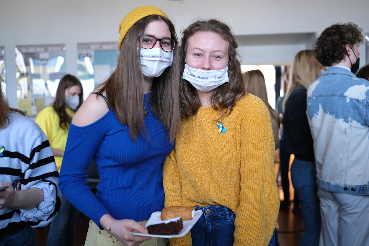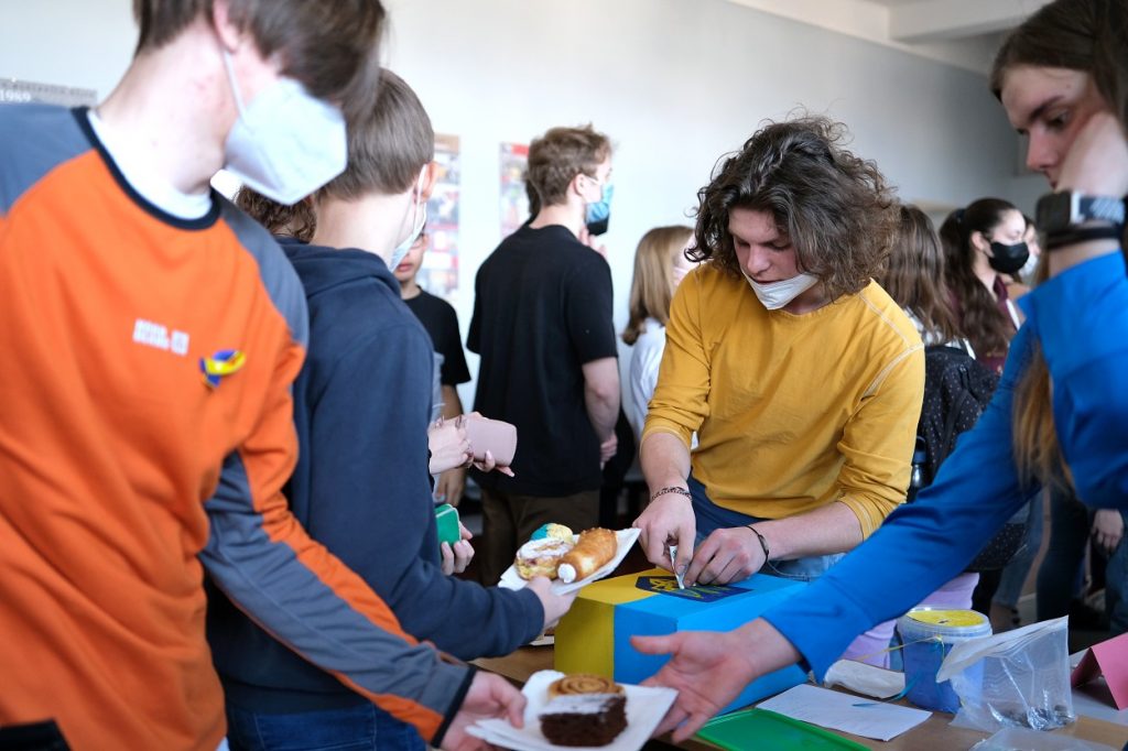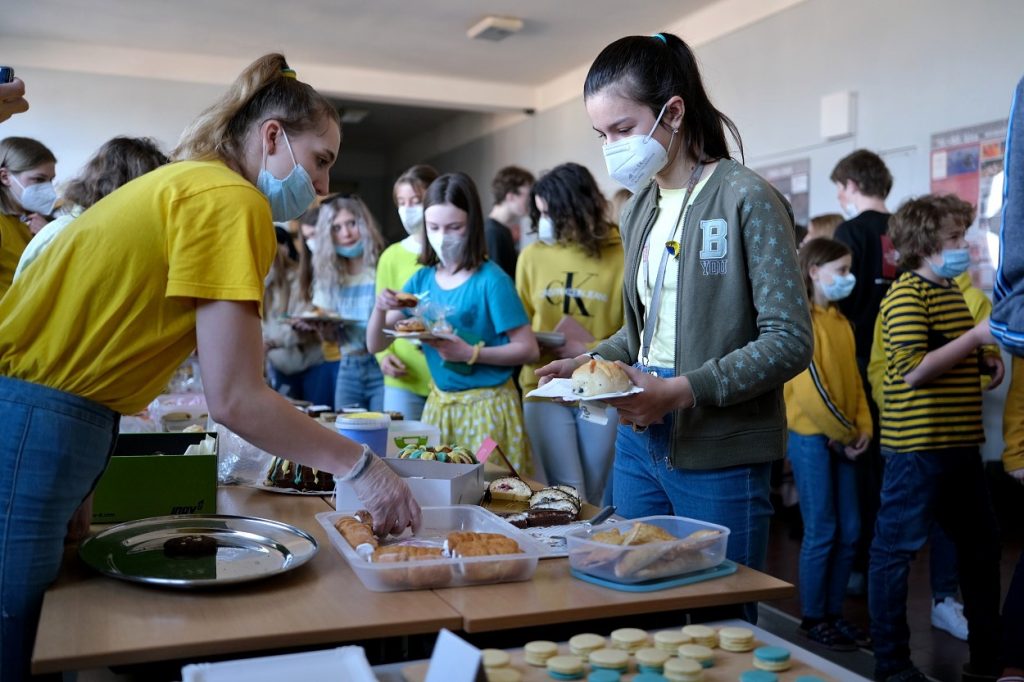 Akce „Pečeme pro Ukrajinu“ spočívala v tom, že každý ze studentů do školy přinesl z domova nějaký kulinářský výrobek. Převažovaly dorty či koláče, na stolech byly bábovky a další pečivo. Hodně z nich mělo modro-žlutou polevu. „Vyzvali jsme studenty z našeho ročníku, ale i ostatní, jestli by se akce zúčastnili. Výsledek nás hodně překvapil. Odpočinkový prostor ve druhém patře školy byl po druhé vyučovací hodině zaplněn asi všemi studenty školy. Každý si něco vybral a přispěl,“ hodnotí za pořadatele Jakub Pimek ze sexty gymnázia.