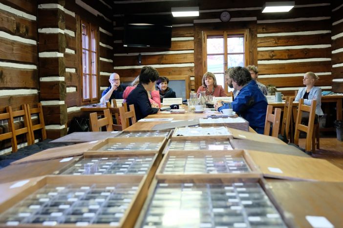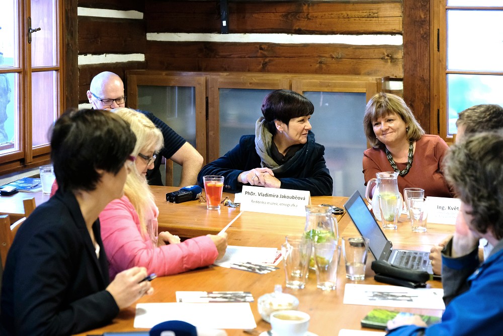 Snímek z tiskové konference, na které byla sbírka představena. V. Jakouběová a K. Vinklátová, Kamenářský dům Muzea Českého ráje v Turnově 16. října 2017