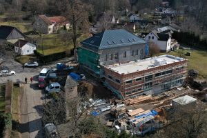 Jakmile nastane lepší počasí, přesune se část prací také ven. Kolem objektu musí vzniknout zpevněné plochy, opěrné zdi či venkovní schodiště.