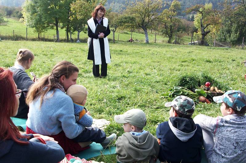 Stěžovat si a nadávat, to by nám šlo! Beru telefon a volám několika lidem, kterým to také není jedno. Píšeme, sháníme, ptáme se, studujeme a zase telefonujeme, píšeme, sháníme… Do podzimu je všechno pohromadě: pozemek, stromky, kolíky, pletiva, rýče, něco k obědu, štrúdl a hlavně lidi! Jablíčková slavnost, kterou na konci podzimu každoročně pořádá Centrum pro rodinu M.E.D. v Semilech se letos konala v obci Klokočí na malé rodinné farmě.