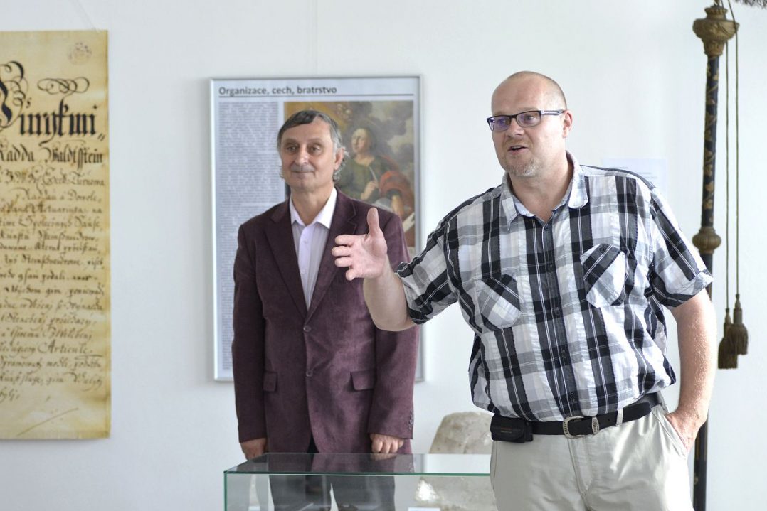 Vernisáž výstavy „300 let zpracování drahých kamenů“ (J. Prostředník na snímku s Tomášem Řídkošilem)