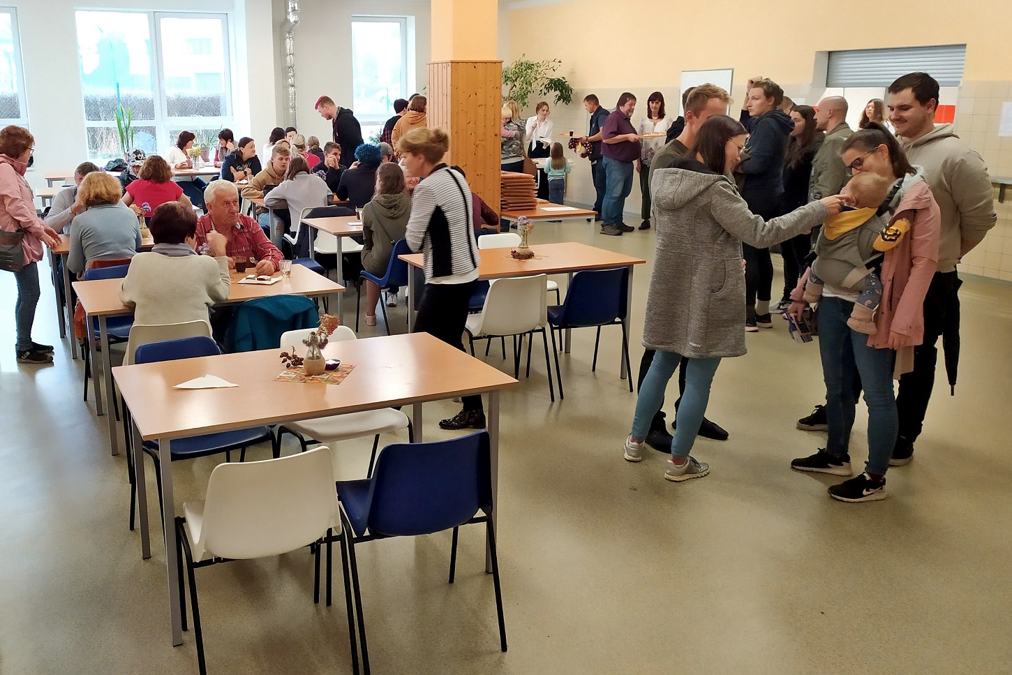 Během sobotního odpoledne 15. října nebylo zrovna ideální počasí na venkovní procházky. Skvělé ovšem bylo na návštěvu školy, která slouží vzdělávání v Jenišovicích už od roku 1962. I tehdejší prvňáčci a jejich učitelé měli možnost sejít se a popovídat si ve školní jídelně (kavárně), kde bylo připravené občerstvení a v roli obsluhujícího personálu zde skvěle fungovali současní žáci deváté třídy. Byli jsme svědky mnoha velmi milých setkání. Příchozí mohli již při pohledu na spoustu aut zaparkovaných v blízkosti školy tušit, že škola bude plná návštěvníků.