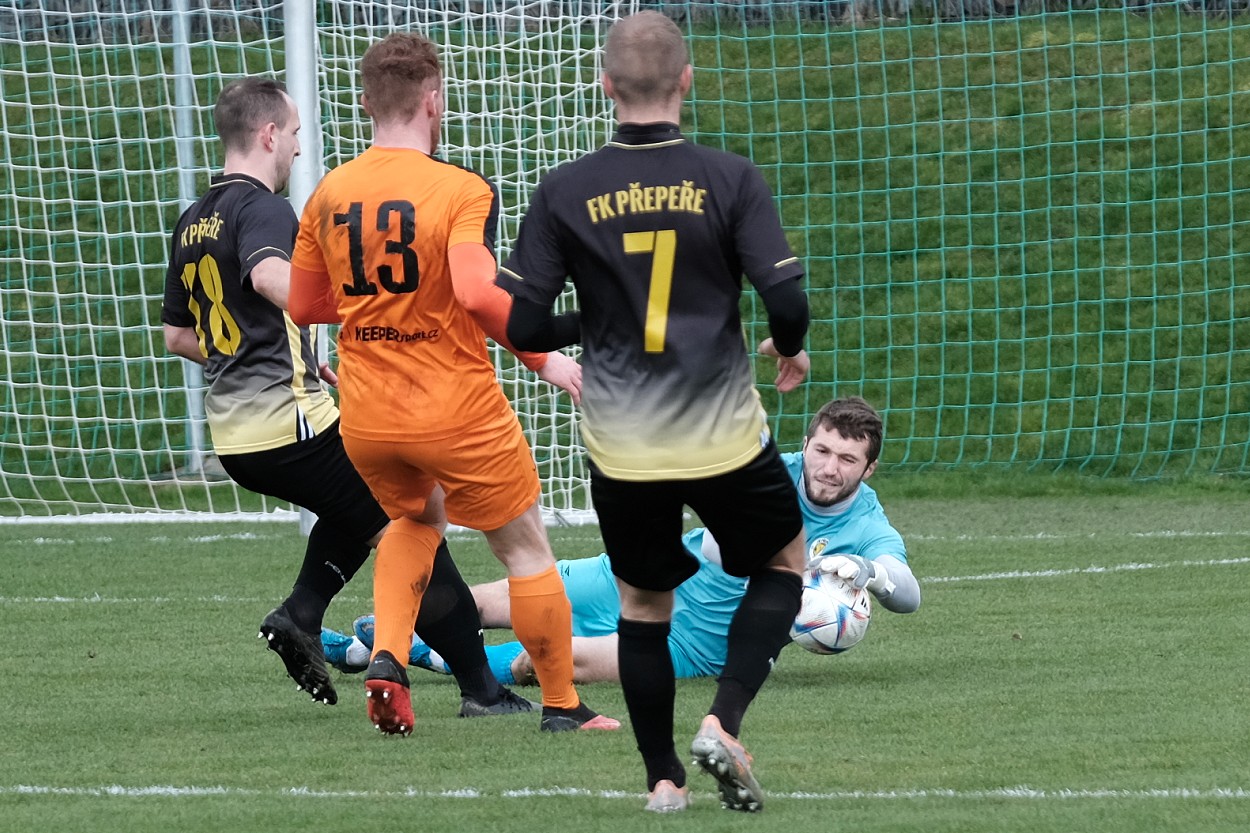 V krajně nepříznivém počasí se na těžkém terénu před zraky dvou set diváků jen ztěžka rodilo povinné domácí vítězství. Byť si Přepeřští s pěti zahraničními posilami vypracovali několik slibných příležitostí, po půlhodině hry se proti živanickému brankáři Frydrychovi dokázal prosadit z Bulířem dobře odvedené práce pouze rtuťovitý Ugwu. Díky dalšímu bodovému zisku Přepeře poskočily v tabulce a k dobru mají ještě odložené utkání s Ústím.