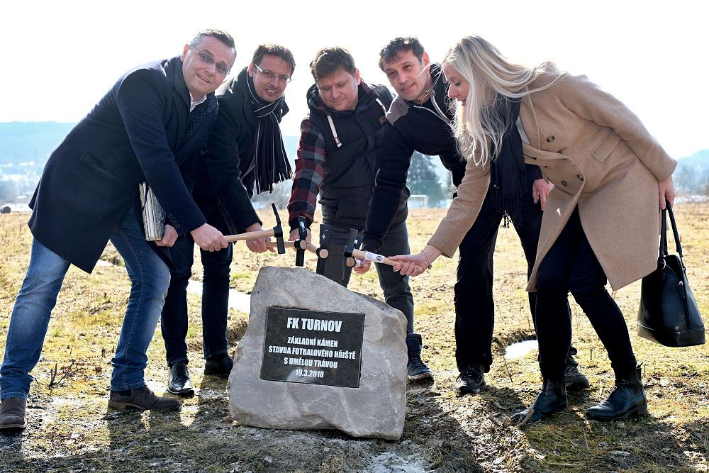 Symbolickým poklepáním na základní kámen a podpisem smlouvy mezi Fotbalovým klubem Turnov a stavební firmou Swietelsky skončila jedna poměrně dlouhá etapa toho sportu v Turnově. O potřebě hřiště s umělou trávou se začalo nesměle mluvit již na přelomu tisíciletí, intenzivně poslední tři, čtyři roky. „Věřím, že zahájení stavebních prací je dobrou zprávou pro všechny turnovské sportovce, nejen pro fotbalisty. Hřiště bude sloužit veřejnosti, školám i fotbalovým oddílům z okolí. Významně rozšíří tréninkové možnosti našich týmů od žákovských kategorií po tým mužů. A odpadnou nám cesty a pronájmy hřišť v okolí, protože dosud jsme jinou možnost, jak trénovat venku od podzimu do jara neměli,“ shrnul při podpisu smlouvy dopoledne v pondělí 19. března prezident FK Turnov Jaroslav Knížek. Současně poděkoval všem, kteří se o vznik hřiště s umělou trávou zasloužili. Fotbalový klub je investorem stavby.