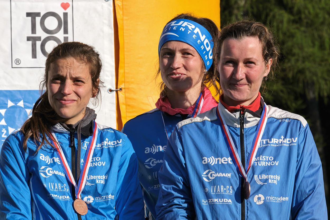 Na prestižním závodě MČR štafet pak získala po dramatickém souboji titul štafeta turnovských dorostenek ve složení Michaela Novotná, Lea Martanová a Kristýna Matyášová a zcela nečekaným bronzem v kategorii žen „uzavřela sportovní kruh“ štafeta našich zkušených závodnic ve složení M. Omová, I. Rufferová a P. Nieke. V mistrovském závodě družstev (štafeta čtyři kluci a tři holky) pak oslabené družstvo dorostu OB TJ Turnov ve složení J. Mellan, M. Novotná, H. Hoetzel, K. Matyášová, M. Štrégl, L. Martanová a Š. Waldhauser po velmi bojovném výkonu získalo skvělý bronz.