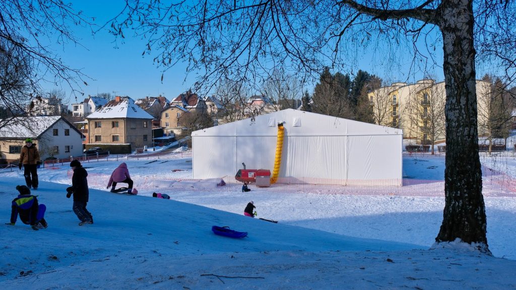 Na travnatém oválu pod sportovní halou v Turnově II vyrostla během několika dní provizorní sportovní hala. Montovaná stavba má pomoci překlenout náročné období přibližně 1,5 roku, po které bude probíhat rekonstrukce stávající haly. Ta odstartuje 26. ledna 2026 a náklady dosáhnou 220 mil. Kč bez DPH.