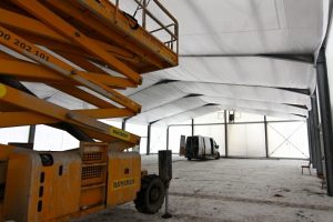 - NA TRAVNATÉM OVÁLU VYROSTLA PROVIZORNÍ SPORTOVNÍ HALA