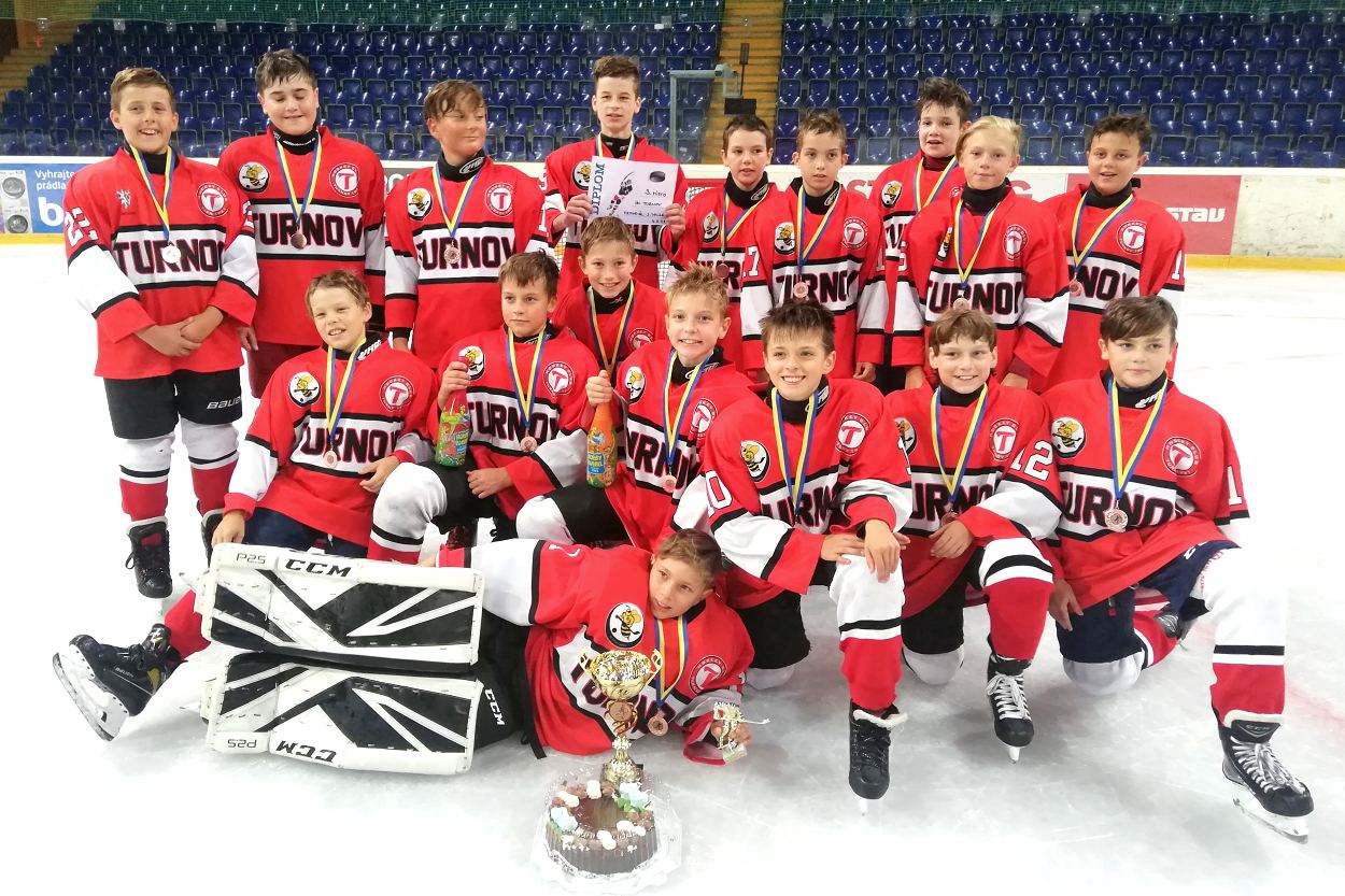 * V sobotu 4. září se v Ústí n. L. hrál mezinárodní turnaj mladších žáků za účasti ESC Dresden, HC Stadion Litoměřice a PZ Kladno. Jak přímo z lavičky uvedl Radek Holán, do turnaje Turnovští vstoupili proti domácímu týmu ospale a první dvacetiminutovku prohráli 5:1 a druhou 4:1, když se dokázal prosadit jen Dan Telyčko. Konečný stav 0:0 z první části souboje s Němci byl odpovídají průběhu hry. V té druhé vstřelil Dan Telyčko důležitý první gól. Poté se ještě nádherně trefil kapitán týmu Dan Dubeš od modré čáry, pak znovu Dan Telyčko při oslabení a tři minuty před koncem pečetil výhru 4:0 Viky Pachota. „Po výborném obědě přišla výhra nad Kladnem. Trestné střílení proměnil Eda Feštr, znovu do vedení 2:1 nás poslal Mário Luky Marx a za vyrovnaného stavu 2:2 utkání rozhodl Viky Pachota svým druhým gólem v turnaji na 3:2. Do posledního zápasu jsme nastoupili proti Litoměřicím. Z třiadvaceti střel pustil za svá záda Vojta čtyři. Na soupeřovu branku jsme poslali osm střel a dvě, jedna Dana Telyčka a jedna Edy Feštra, skončily za jejich gólmanem. Na poslední dvacetiminutovku nám už nezbyly síly a prohra 0:5 byla jednoznačná, i tak jsme brali bronz, z něhož měli kluci velkou radost,“ sdělil telegraficky náš respondent. V brance celý turnaj odchytal Vojta Holán, v obraně odehráli celý turnaj Dan Dubeš, Mára Kašpar, Vašek Lamač, Vojta Hloušek, Tonda Chmelík, Vašek Beran a v útoku bojovali Dan Telyčko, Eda Feštr, Štépa Jindra, Honza Trosberg, David Burjánek, Mario Luky Marx, Adam Stránský, Sam Soumar, Viky Pachota a Séba Šulc.