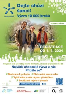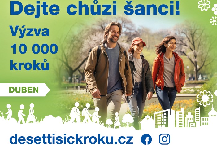 Další kolo výzvy 10 000 kroků startuje 1. dubna 2024 a svým zapojením se můžete najít cestu k vyváženému životnímu stylu, vrátit chůzi do běžného pracovního dne, uzavírat nová přátelství i pokořit osobní hranice. Na webu Deset tisíc kroků ke zdraví se můžete registrovat od 1. března 2024!