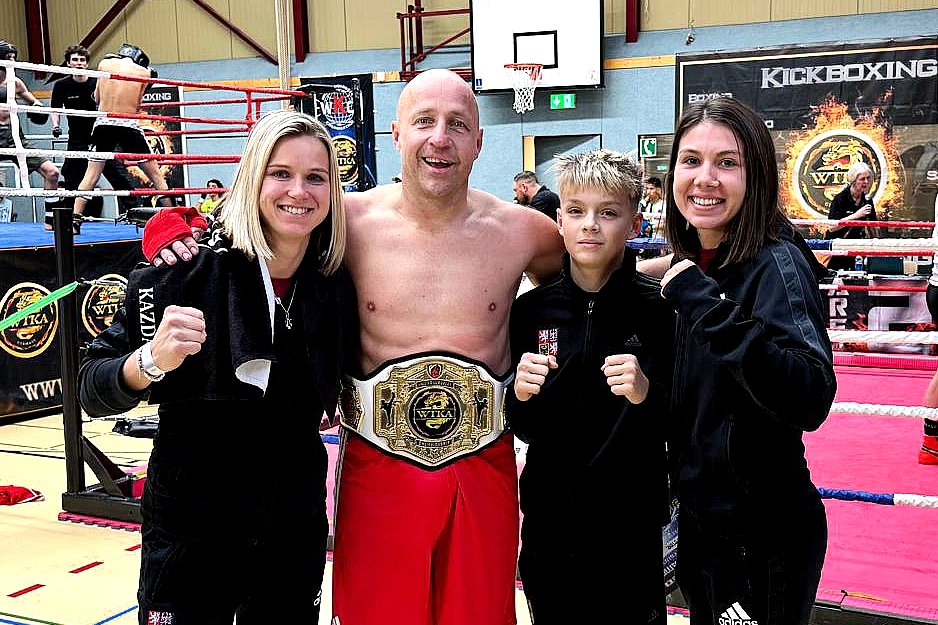 Evropský šampionát proběhl o víkendu 22. a 23. listopadu v německém Arnsbergu. Nezvykle už ve středu mu předcházelo on-line vážení a registrace. „To jsem zažil poprvé za jednatřicet let, ale pak už jsme se mohli pořádně najíst a soustředit na samotný turnaj,“ bral to s humorem sobě vlastním Petr Kazda, jenž se svým týmem v obvyklé sestavě do Německa vyrazil. V sobotu byly na programu tzv. plně kontaktní disciplíny a legendární sportovec si zde po dlouhé době zkusil klasický box v kategorii mužů do 86 kg. A hned z toho byla další senzace! „Podařilo se mně vyhrát a stát se v padesáti letech mistrem Evropy, když jsem ve finále porazil osmnáctiletého kluka. Když jsem se před dvaceti lety vracel k závodění po tři a půlleté pauze, nikdy by mě ani ve snu nenapadlo, že budu tak dlouho boxovat, ale díky holkám a Tommymu mně to pořád baví a nikdy před tím jsem si samotné závody tak neužíval,“ vyznal se upřímně novopečený šampion po svém evropském triumfu s věkovým rozdílem 32 let!