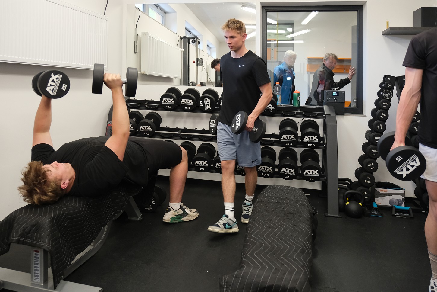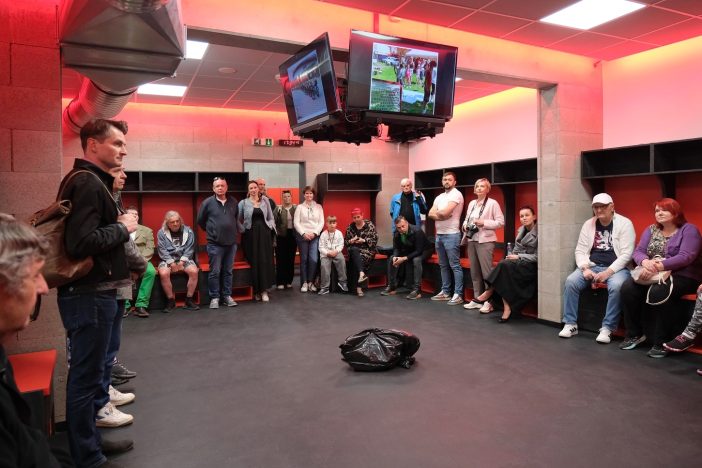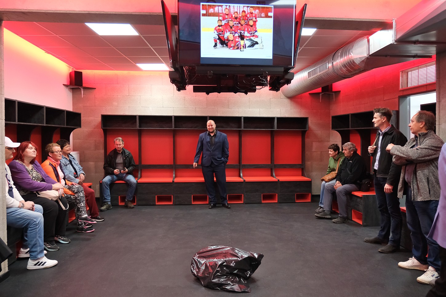 Součástí přístavby je také šatna hokejového A týmu, za kterou by se podle manažera Maškovy zahrady Tomáše Špinky (uprostřed na snímku) nemusel stydět leckterý extraligový tým. Kabině vévodí televizní kostka uprostřed u stropu, kolem dokola jsou pohodlné boxy okopírované ze šatny libereckých Bílých Tygrů. „Největší bolestí už od zprovoznění zimního stadionu byl malý počet šaten. Jak se hokejový klub rozrůstá, tak to bylo čím dál naléhavější. V roce 2015 klub začínal s 20 dětmi, dnes jich má 200 ve všech mládežnických kategoriích až po juniory,“ přibližuje Špinka. Nyní je celkový počet šaten dostačující, pouze ti úplně nejmladší budou muset nosit výstroj domů. Co by bylo do budoucna ještě dobré na zimním stadionu vyřešit, je možnost ubytování. Nyní otevřená přístavba šaten je technicky na zvýšení o patro připravena. -tva-