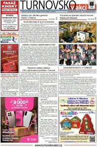 Nová turnovská knihovna se blíží dokončení. Hokejoví junioři vzdali hold válečným hrdinům. Spolek PRO TUNEL RÁJEM zve na veřejnou debatu na téma silnice I/35. Blíží se otevření nového mostu přes Jizeru v Přepeřích. Adventní program v Turnově a okolí. Splněný sen dobrovolných hasičů v Olešnici. Vánoční koncert Waldových Matušek. Nábor do městské hasičské jednotky. Objekt pro dětskou skupinu je dokončen. Taneční a pohybová školy ILMA slaví 30 let. Souhrn fotbalového podzimu.