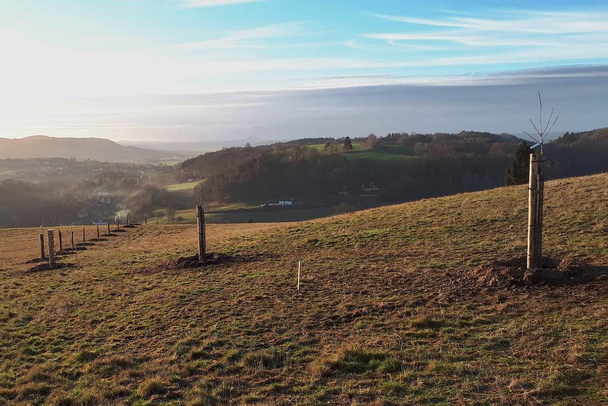 Třetím projektem, na který bych rád upozornil, je výsadba hrušňové aleje v Kacanovech – 30 stromů starých odrůd bylo na konci loňského roku vysazeno na louce ve svahu vedoucím z Kacanov směrem ke Kopicovu statku.