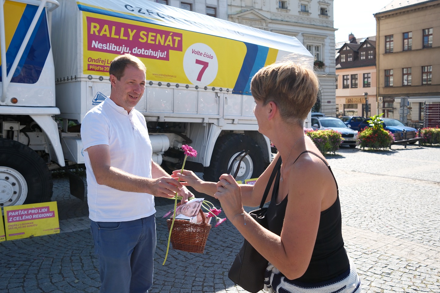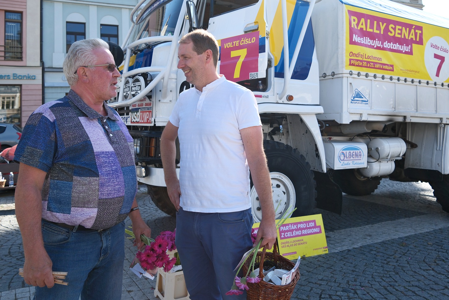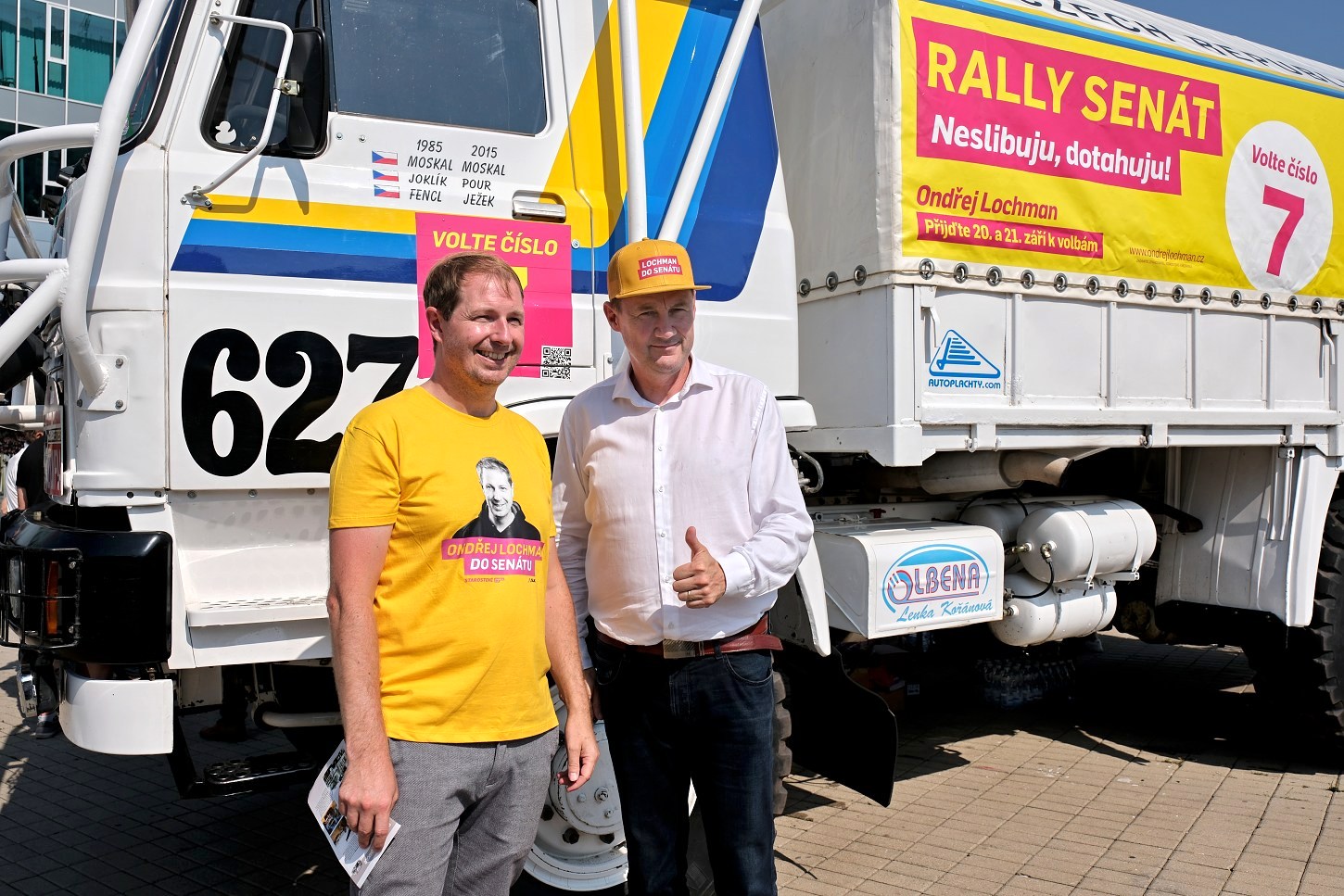 V rámci předvolební kontaktní kampaně Ondřej Lochman využíval upravené nákladní vozidlo LIAZ, které absolvovalo legendární rallye Paříž – Dakar v roce 1985. Na snímku společně s hejtmanem Martinem Půtou.
