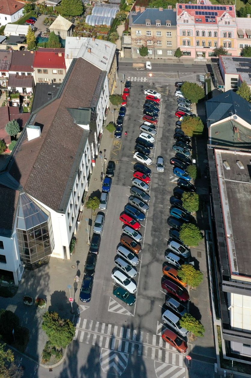 V místě stavebních prací nebude možné parkovat, protože se zde bude pohybovat technika! Je tedy třeba počítat se sníženou kapacitou parkoviště na Havlíčkově náměstí o zhruba 10 míst. Dláždění bude provedeno z kamenné mozaiky do vějíře a propojí tak dlážděné chodníky v ulicích 5. května a 28. října.
