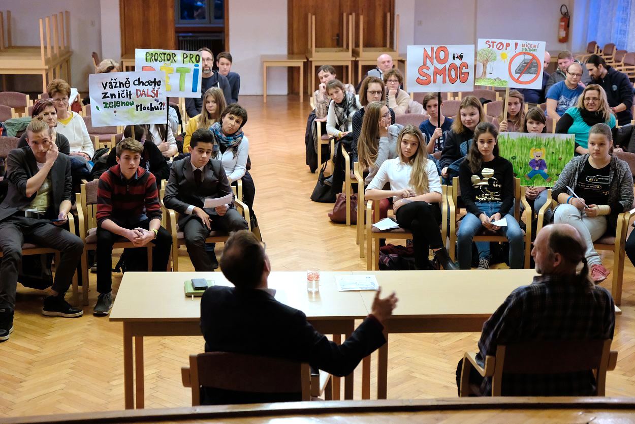 Zhruba pět desítek lidí našlo ve středu 28. listopadu vpodvečer cestu do sálu SUPŠ ve Skálově ulici, kde se uskutečnilo na popud Parlamentu mládeže města Turnova diskuzní setkání na téma záměru stavby parkoviště za Vesnou vedle Havlíčkova náměstí. „Plním usnesení zastupitelstva města, které nákup pozemku na parkoviště odsouhlasilo velkou většinou hlasů. Současně je to i odpověď na stesky obchodníků, kteří říkají, že lidé v centru města nemají kde zaparkovat a my nechceme, aby obchody na hlavních ulicích a náměstích zely prázdnotou,“ řekl úvodem starosta města Tomáš Hocke.