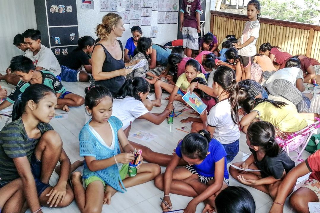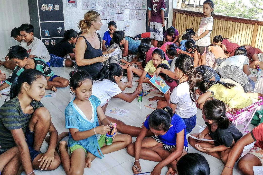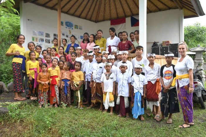 Ve vesnici máme klubovnu pro děti. Tam se s dětmi třikrát v týdnu scházíme. Malujeme si, kreslíme, navlékáme náramky a teď aktuálně se učíme tancovat balijské tance, které vám na Vánoce na Facebooku ukážeme.