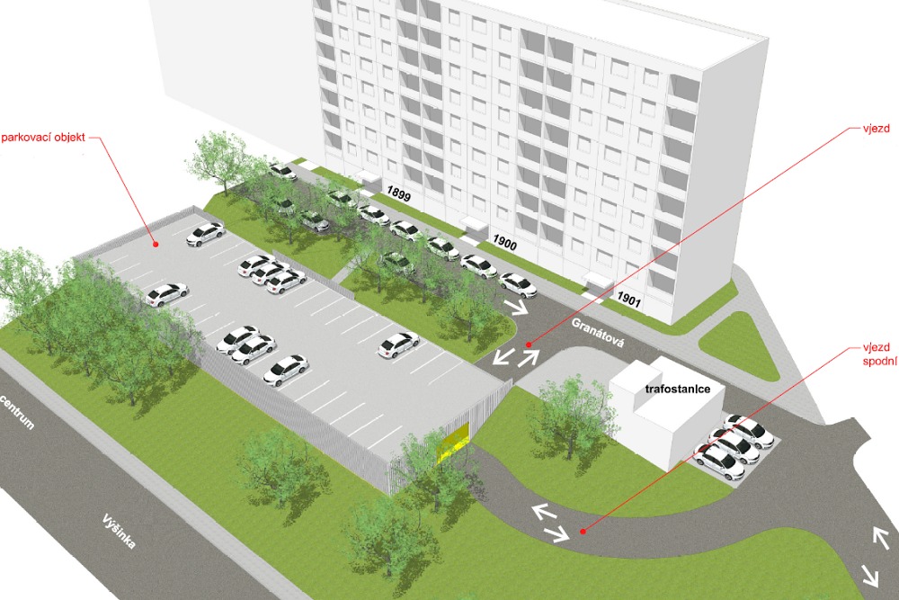 Studie revitalizace sídliště, zpracovaná pražským architektonickým ateliérem AND, byla v červnu projednána s občany, v říjnu již vzhledem k omezením setkávání z důvodu epidemie covid-19 setkání nebylo možné, stavbou dotčení občané nicméně dostali informace do svých schránek a měli možnost se vyjádřit k možnosti výstavby parkovacího domu v Granátové ulici, který by vznikl na místě dnešního parkoviště mezi Granátovou ulicí a hlavní ulicí Výšinka, která je současně výpadovkou z centra města na Jičín.