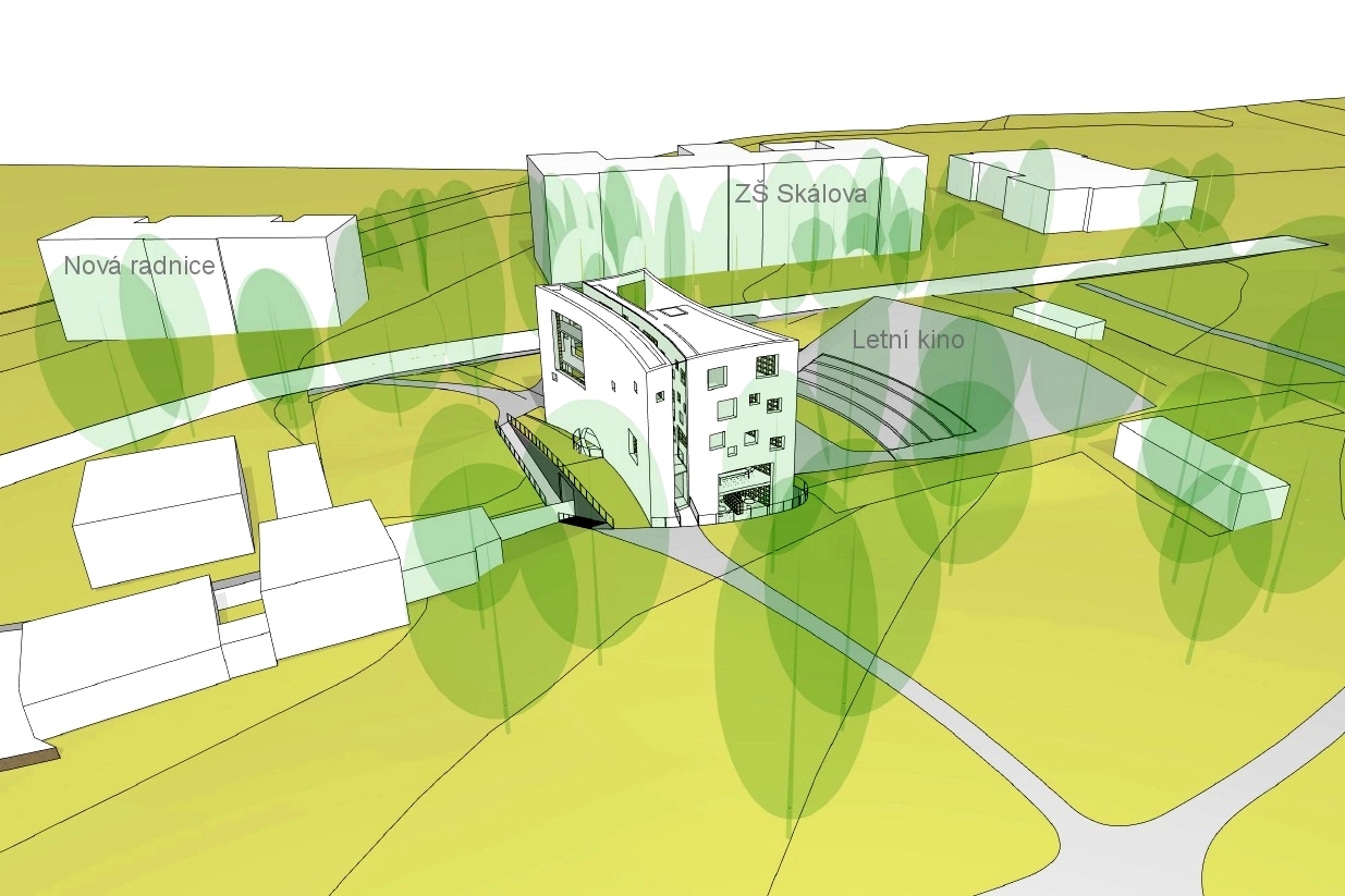 Když bylo zastupitelstvem města definitivně rozhodnuto, že nová knihovna bude stát někde v prostoru za promítací stěnou letního kina, poměrně dlouho se řešilo, jestli to nemá být společný projekt se Žlutou ponorkou, protože ani ten její objekt v Husově ulici není pro její aktivity úplně nejvhodnější. I to nakonec padlo. Poslední roky už bylo jasno, že knihovna bude stát ve Skálově ulici a půjde o stavbu, která bude sloužit jen jí. Sešlo se několik pozoruhodných studií, jak by nová knihovna mohla vypadat (ZDE), nakonec padlo rozhodnutí pro velmi neotřelé řešení pražského ateliéru A69 architekti s. r. o., které by jednou mohlo být architektonickou chloubou celého regionu.