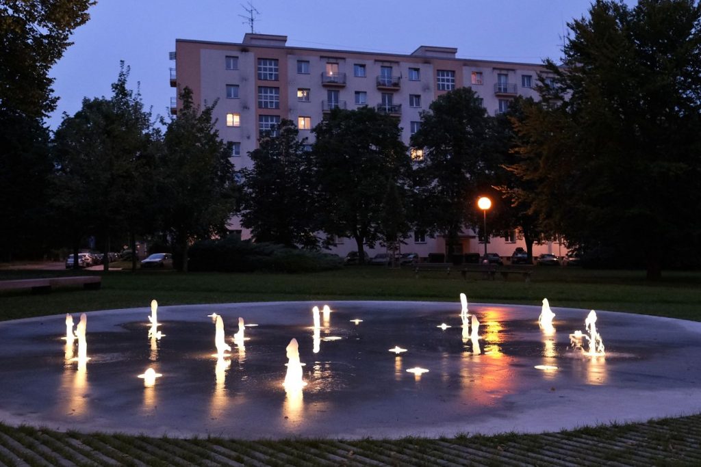 Vodní fontána se speciální technologií byla vybudována v rámci sedmé etapy regenerace sídliště u nádraží. Lze nastavovat intenzitu a výšku vodního proudu, vodní prvek je doplněn o LED osvětlení, které se automaticky zapne při setmění.