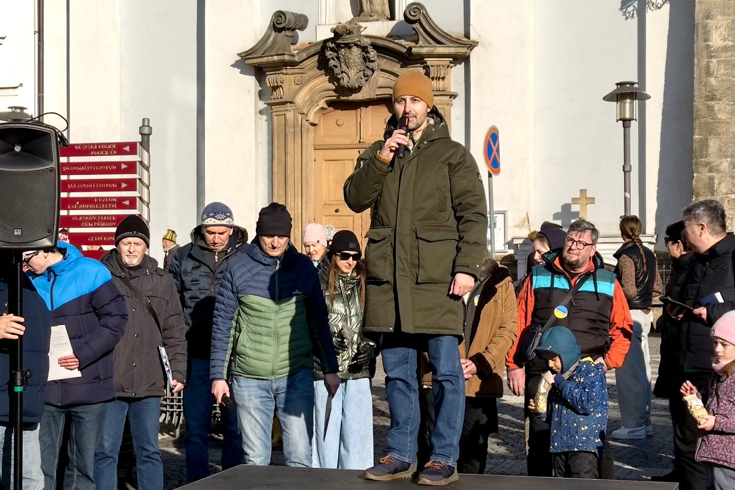 Zástupce spolku Milion chvilek pro demokracii, turnovský student Tadeáš Kutek, přítomné seznámil s výzvou na podporu prezidenta Petra Pavla, kterou již podepsalo téměř 770 tisíc lidí, a připomněl i odkaz vězně svědomí Alexeje Navalného.