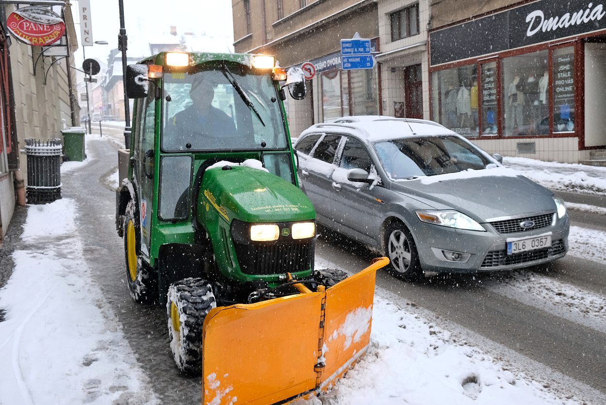 „V situacích jako je ta dnešní, kdy stále padá, udržujeme městské komunikace stále dokola, protože sníh chodníky po krátké době zasype. Největší problémy jsou samozřejmě ve stoupáních, na některých místech máme povoleno solit, jinde pluhujeme a sypeme drtí,“ přiblížil Preisler.