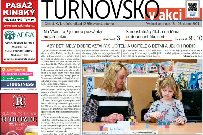 Slavnostní zápis dětí do prvních tříd základních škol, devadesátý čtvrtý Hejtmanský den, pozvánka na Český ráj dětem – tradiční akce na zahájení turistické sezony. Výstavba nové knihovny bude znamenat dvouleté omezení provozu letního kina. Jarní akce na Všeni. Sdružení Český ráj reprezentuje region na zahraničních veletrzích cestovního ruchu. Představení týmu pro mistrovství republiky v automobilovém rally – KONTAKT ŠKODA TEAM. Z obcí Turnovska představujeme Rovensko pod Troskami. V samostatné příloze města Turnova se dozvíte více o novém pojetí základního školství v Turnově. Výstavy, pozvánky na kulturní a sportovní akce, společenská kronika.
