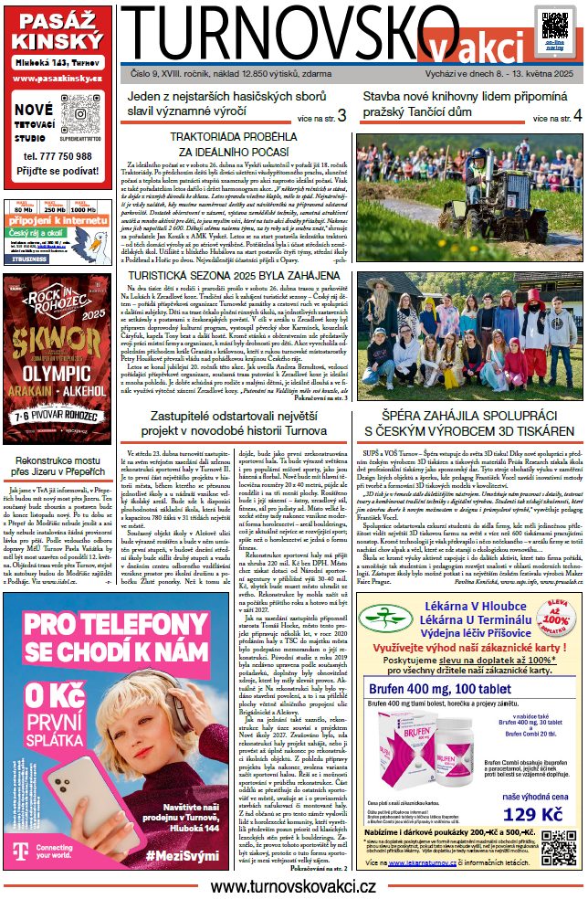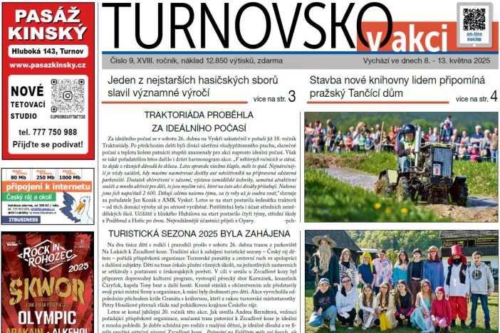 Ohlédnutí za Traktoriádou na Vyskři a zahájením turistické sezony na Turnovsku. Projekt Nové školy 2027 v Turnově II začne rekonstrukcí sportovní haly. Příručka pro návštěvníka knihkupectví. Budoucí prvňáčci byli u zápisu. SDH Turnov slavil 155. výročí od svého založení. Stavba nové knihovny pro někoho připomíná Tančící dům. Český ráj do sluchátek. Kulturní a sportovní servis a společenská kronika.