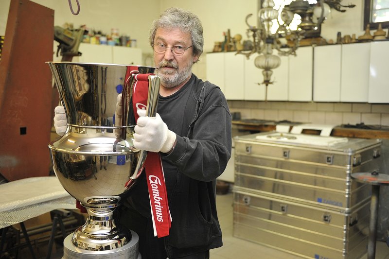 Událost pro fotbalové fandy naprosto zásadní. Předávání velkého poháru pro vítěze nejvyšší české fotbalové soutěže je událostí. Nedávno jsme si tento svátek užili i v našem regionu, když se nejlepším klubem stal Slovan Liberec. Poté kralovala Plzeň a nyní pražská Sparta. Málokdo ale ví, že pohár pro vítěze i malé poháry pro další příležitosti vznikají v Turnově. Přesněji tedy v Mašově, ve firmě Monstranz. „Je to samozřejmě prestižní zakázka, i když my se spíše věnujeme restaurování předmětů pro památkáře či liturgických předmětů pro církve,“ říká majitel firmy Milan Zdeněk. Pohár pro vítěze Gambrinus ligy je zhotoven z poniklované mosazi, váží 15,5 kilogramu a měří 69 centimetrů.