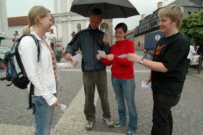 Dnes odpoledne chodily dvě dvojice studentů Obchodní akademie a hotelové školy ulicemi Turnova a okolojdoucím dávaly do rukou lístečky se žádostí o podporu svého snažení: „Přijďte nás podpořit! Ve čtvrtek 10. května v 15 hodin se koná u budovy školy ve Zborovské ulici manifestace žáků proti slučování Integrované střední školy a Obchodní akademie a hotelové školy.“ Podle studentky Veroniky Maškové může ve čtvrtek přijít ke škole každý, jde o otevřenou akci pro všechny občany, kteří mají pocit, že tuto aktivitu chtějí podpořit.