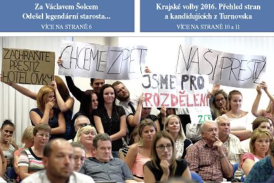 V pořadí 18 letošní vydání novin TvA se věnuje jednání krajských zastupitelů, kteří rozhodli, že o osudu turnovské „hotelovky“ snad definitivně rozhodnou na zasedání 27. září. V novinách je také záznam prvního dne nového školního roku včetně počtu prvňáčků na školách Turnovska, v novinách najdete i další díl sporu kolem kalicí linky firmy KAMAX na Vesecku, turnovští zastupitelé se věnují tématu investičních priorit ve školství. V rozšířeném vydání novin se prezentují i jednotlivé strany před krajskými volbami. Nechybí samozřejmě společenská kronika a pozvánky na kulturu a na sport…