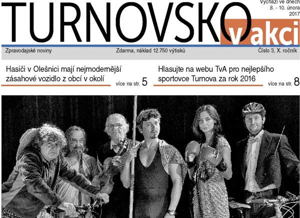 Blížící se divadelní festival Modrý kocour je hlavním tématem obsahu třetího letošního vydání novin Turnovsko v akci. Vloni zázemí přehlídky prošlo generační výměnou, do čela se postavil Mario Kubaš, otázkou je, jestli loňské impozantní a nápadité slavnostní zahájení lze ještě překonat. Uvidíme v pátek 24. února! V novinách se věnujeme také důsledkům výskytu ptačí chřipky na Kadeřavci, zahájení rekonstrukce Nádražní ulice, je tu reportáž ze slavnostního předávání nového hasičského vozidla v Olešnici. Standardně ke každému vydání novin patří společenská kronika a kulturní a sportovní servis.