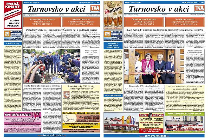 Tentokrát opět po čase „kronikářským zápisem“ spojíme dvě poslední vydání novin TvA. V obou jsou již jedním z hlavních témat komunální volby, resp. konec funkčního období končícího zastupitelstva. V čísle osmnáct je to přehled hlavních událostí uplynulých čtyř let, v čísle devatenáct je to glosář na pozadí jednoho volebního programu (TOP 09) a jeho porovnání s programy dalších stran. Je zde také bilanční rozhovor se starostkou Turnova Hanou Maierovou. Kromě toho obě čísla přinášení vyčerpávající souhrn dění na Turnovsku: