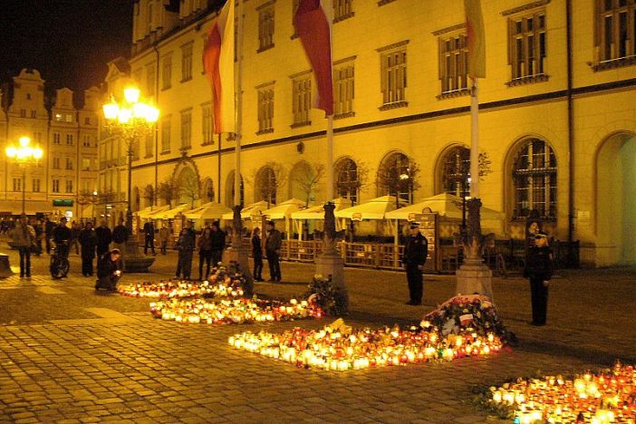 Večer jsme tedy vyrazily do wroclawských ulic na večeři. I zde nás provázela těžká atmosféra celé události. Koncerty byly zrušeny, divadla nehrála, na náměstí přibývaly květiny a svíčky, u kterých vojáci drželi čestnou stráž. Šly jsme do hospůdky na večeři. A tady to vřelo. Slečna vedle u stolu se loučila se svobodou… Poté jsme se přesunuly do jiné hospůdky, abychom vyzkoušely polské medové pivo. I když podle slov Dagmary: „České pivo je prostě to pravé pivo!“ A i tady to vřelo. Ale přesto i zde byl cítit stín toho, co se událo. Dvě obrovské televizní obrazovky neustále informovaly o nových skutečnostech. Lidé vždy odtrhli oči od svých půllitrů a bylo vidět, že to opravdu nikomu není jedno! Ani v jedné z hospůdek nehrála hudba. Dlouho jsme si s Dagmarou povídaly a přišla řeč i na politiku. Vysvětlila mi, že lidé v Polsku jsou politikou znechuceni a mají všeho toho hádání a handrkování dost a dospěly jsme k názoru, že jsme na tom vlastně tak nějak podobně.