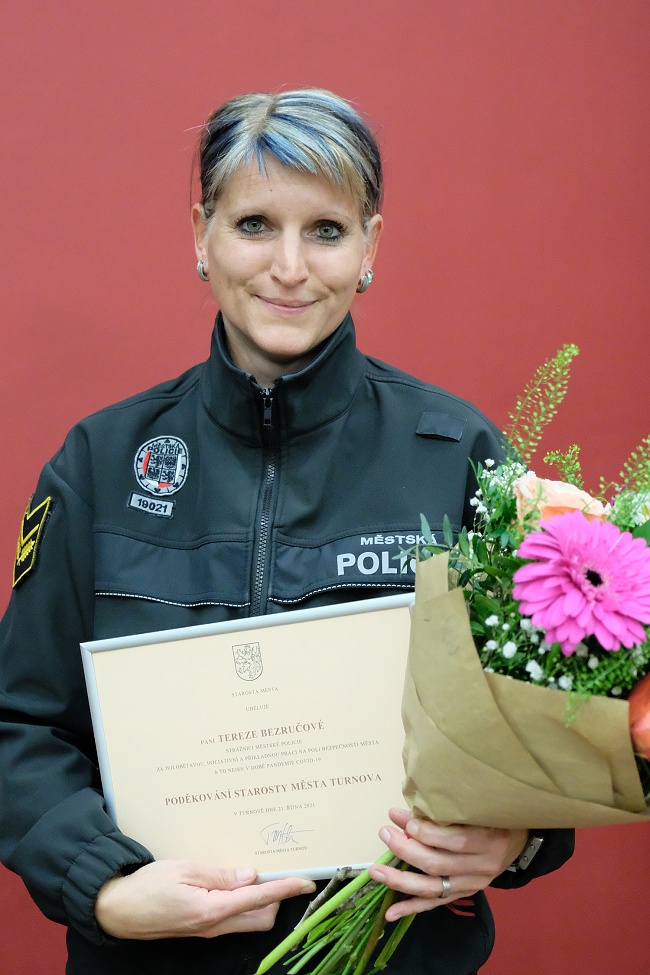 Úvodem veřejného zasedání turnovských zastupitelů ve čtvrtek 21. října byla oceněna strážnice městské policie Tereza Bezručová.